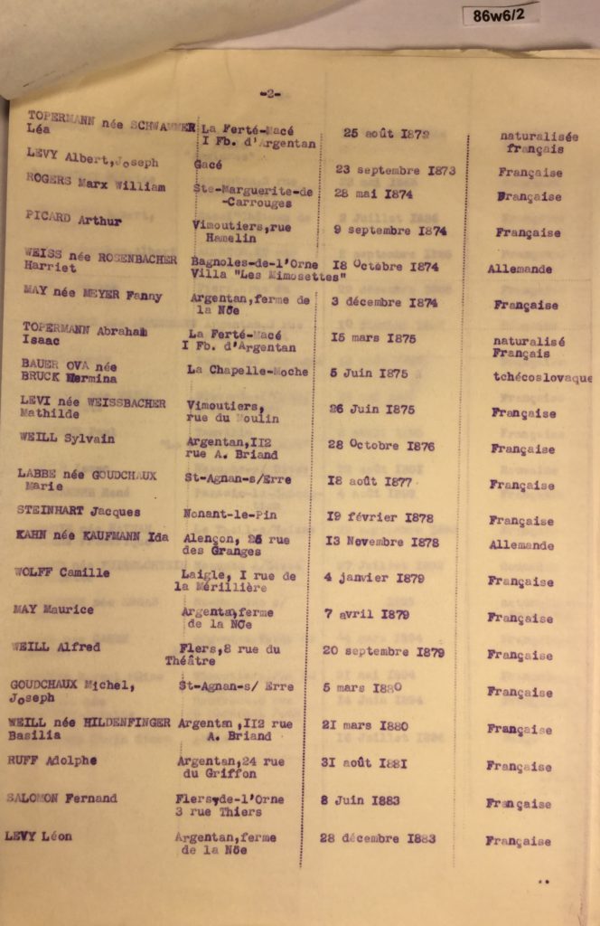 Juifs décédés pendant l’occupation allemande, Arch. dép. Orne, 86 W 5